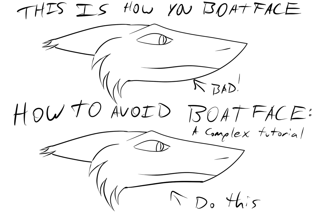 That wasn't meant to be a reference for anything other than what a boatface is when people talk about these drawings, and a halfassed five second doodle while drunk is not something anyone should be basing their references on. I maintain that people should probably use the two reference pictures that are up on the wiki if people want to draw them like I draw them, but otherwise it really doesn't matter.