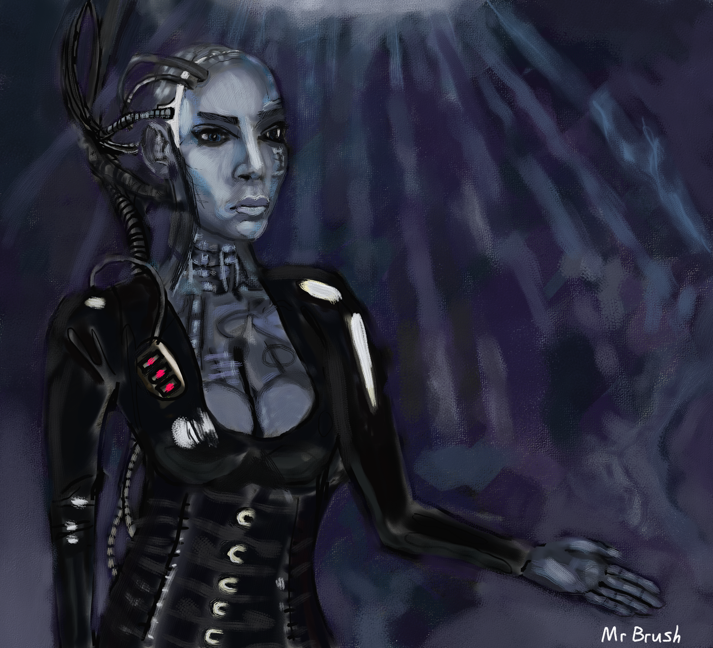 Tried out a brush style more. Source image: http://2.bp.blogspot.com/-wvgVPbpNN7o/TrFSZS293TI/AAAAAAAAAEA/or21sKIzXb0/s1600/skavenslave.jpg