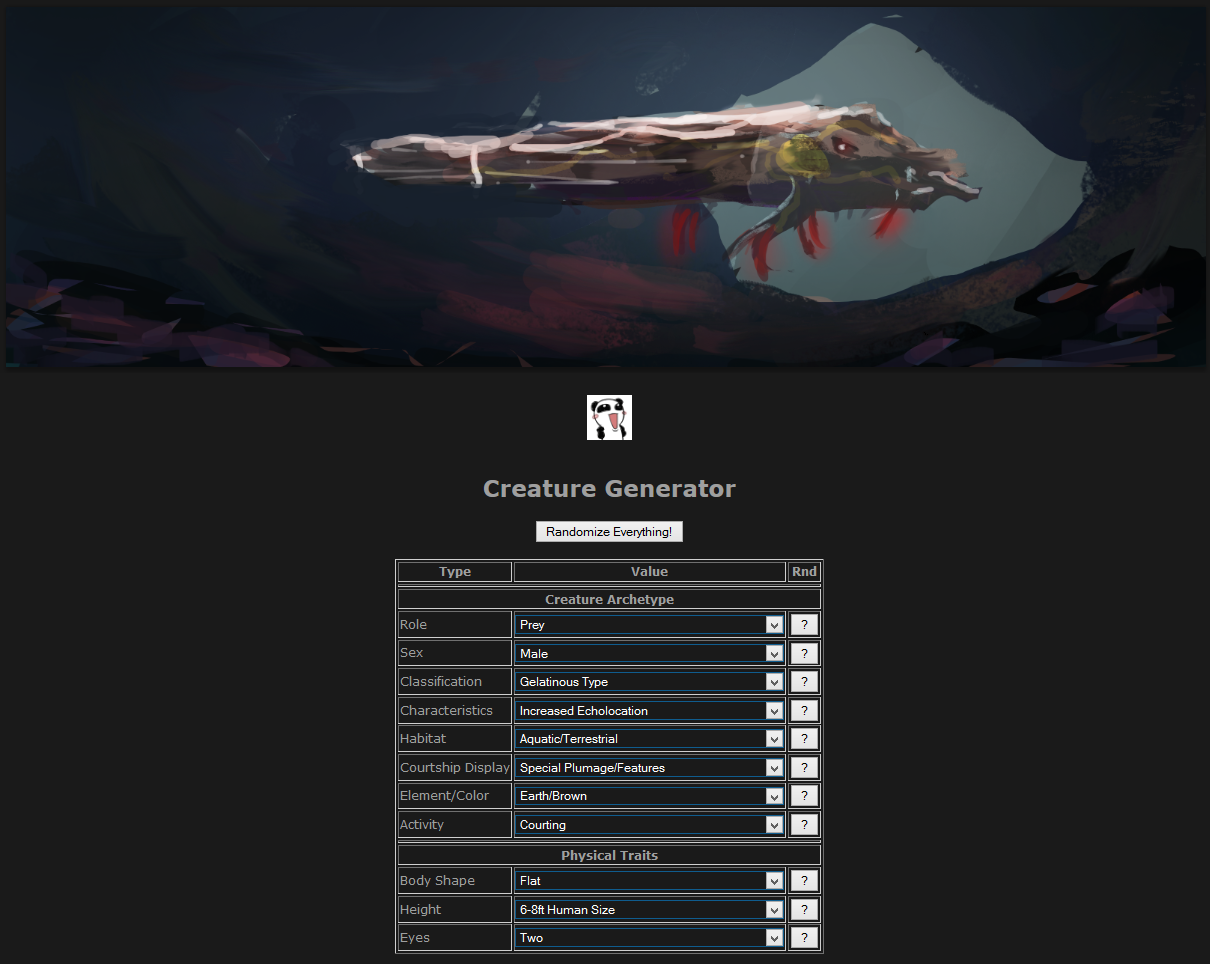>>24325 It's the generator on Chrimson Daggers. I'm drawing on photoshop CS6 though. Here's the link for the generators. http://crimsondaggers.com/forum/forum-56.html tfw this creature that was generated. I never wanted this to happen.