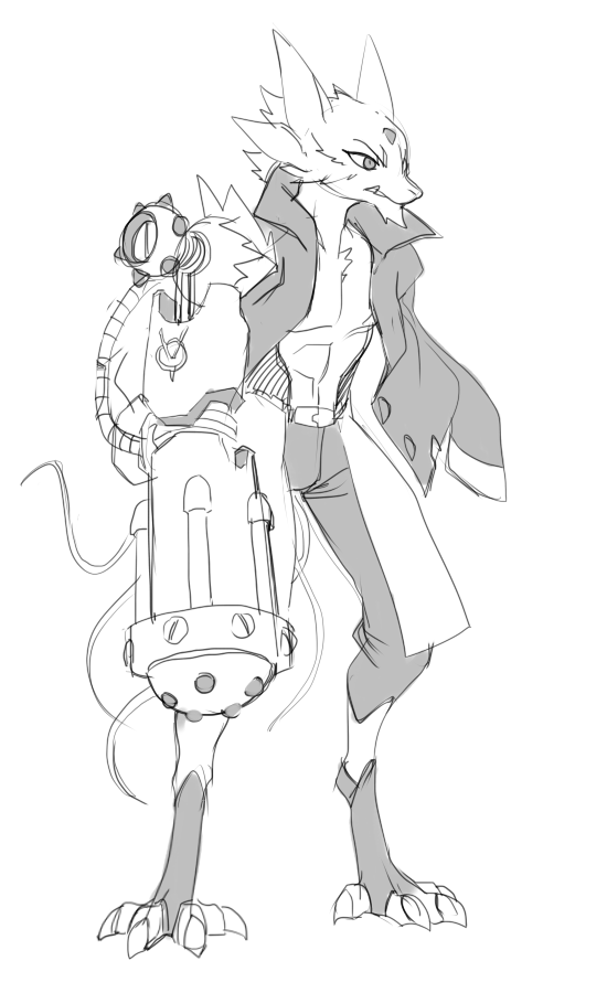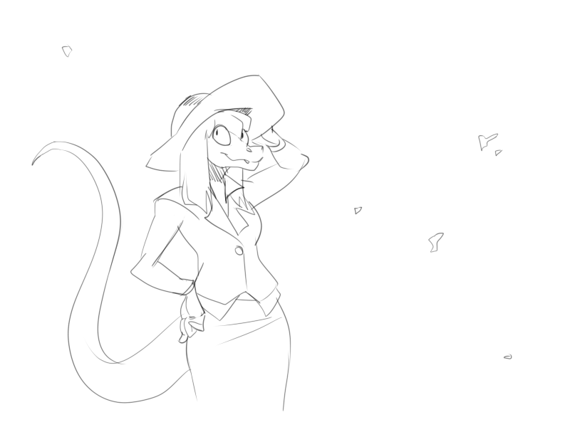mhmm, 'lizard'... is the newspaper on it's head for fashion? Asside from the attire, the body is preemo thumbs up stuff. To do good with a mouse is to have a solid resistant surface for better line control- boy do i know about using mouse art, it is hard.