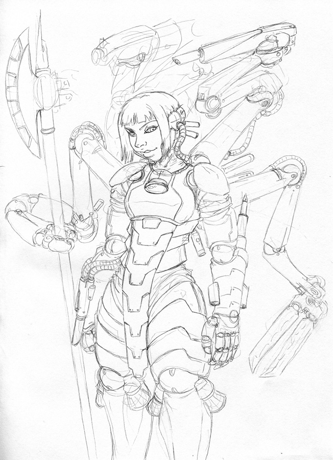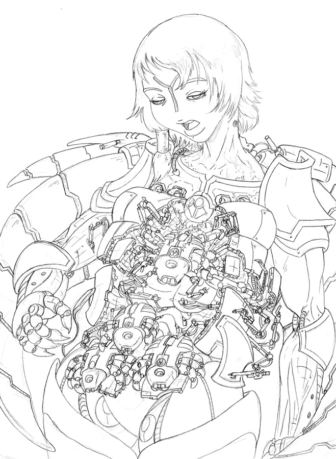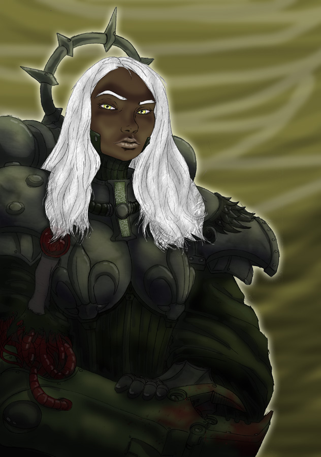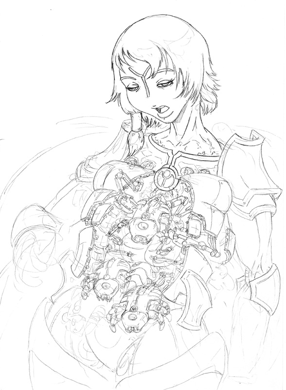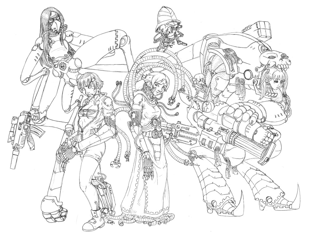 Not sure, took me a few days after work and half a weekend to get this far. main part of the work was the techpriestess herself and the background, everything else was done kinda quickly.