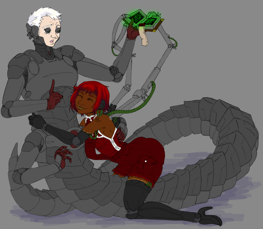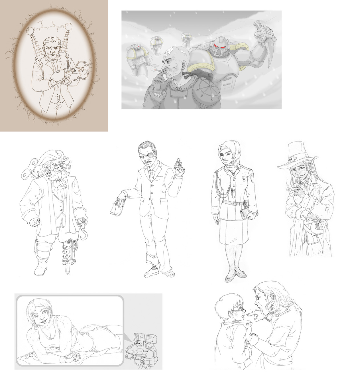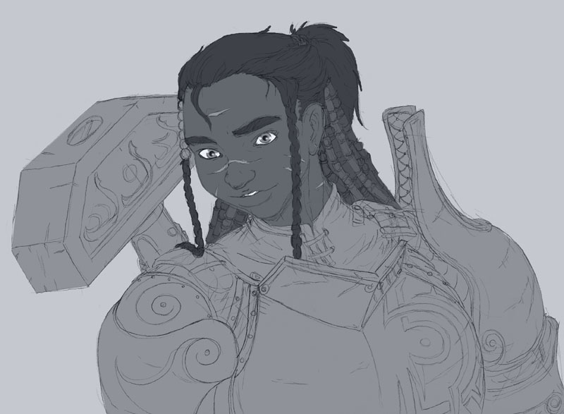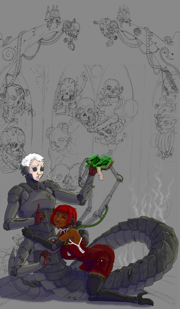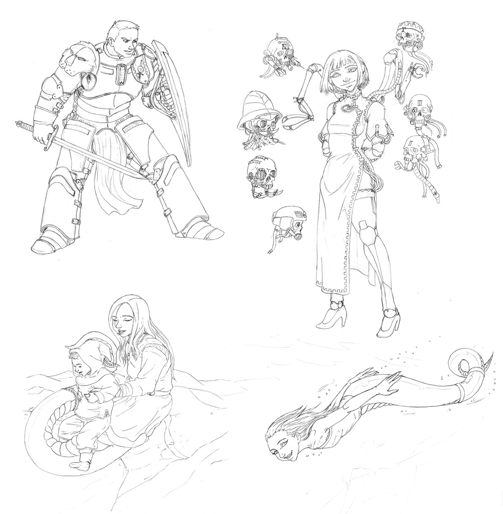 Not sure, took me a few days after work and half a weekend to get this far. main part of the work was the techpriestess herself and the background, everything else was done kinda quickly.