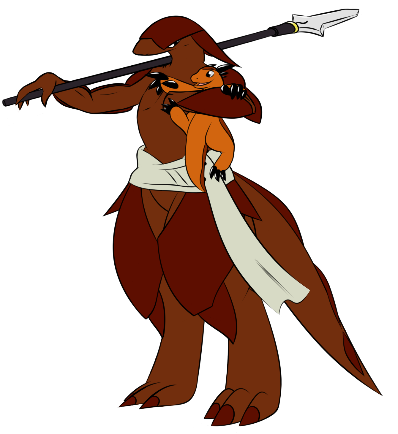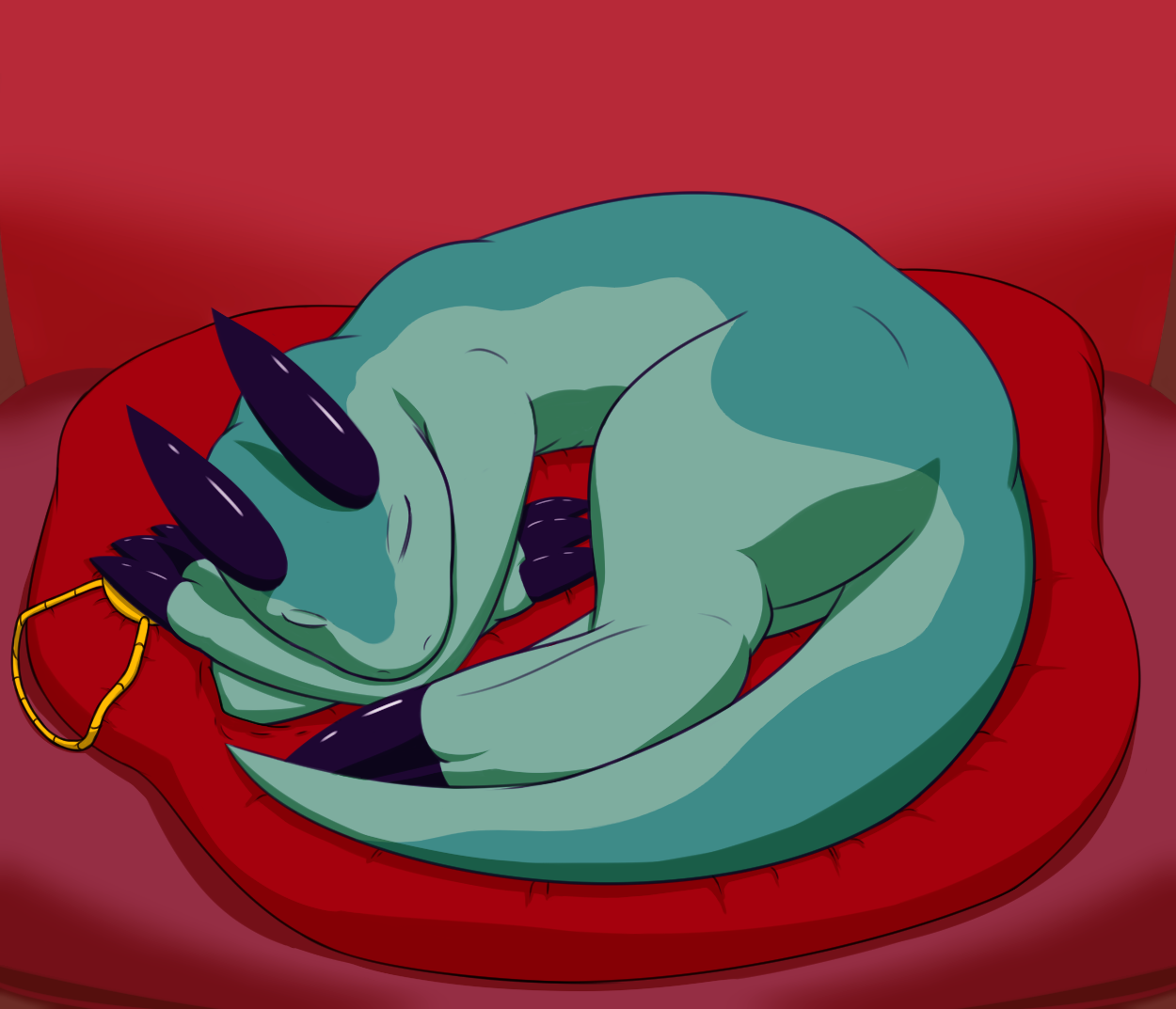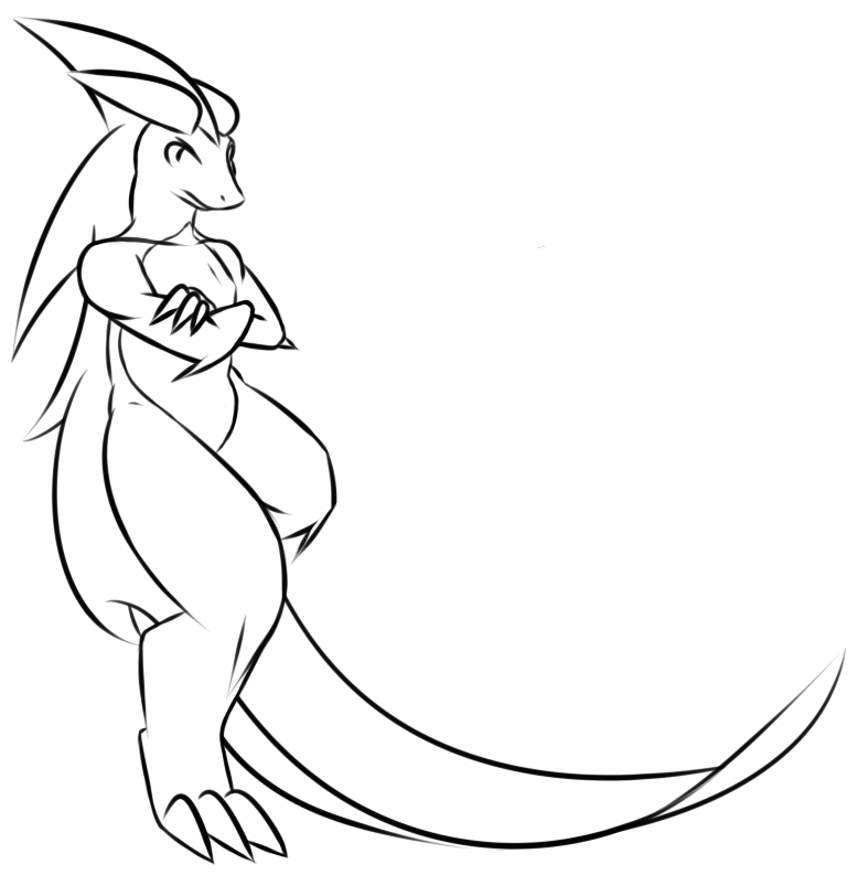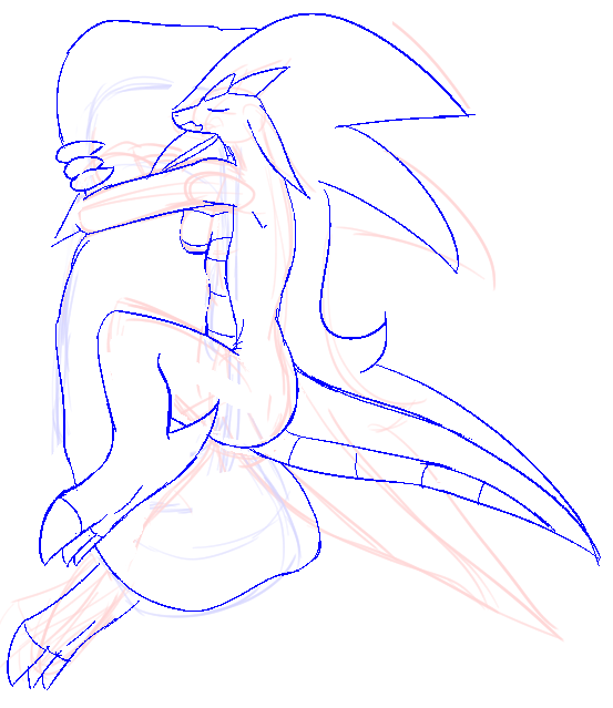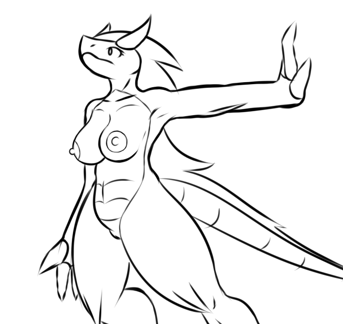 Her right leg, the calf should be visible. Basically, I don't think it's possible to completely hide the calf in a pose like that.