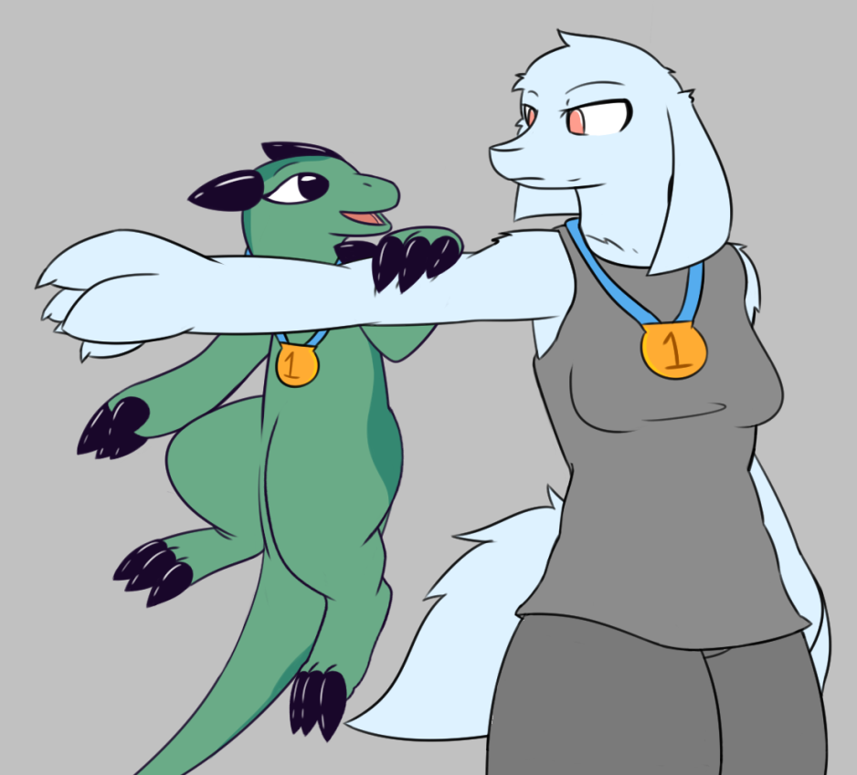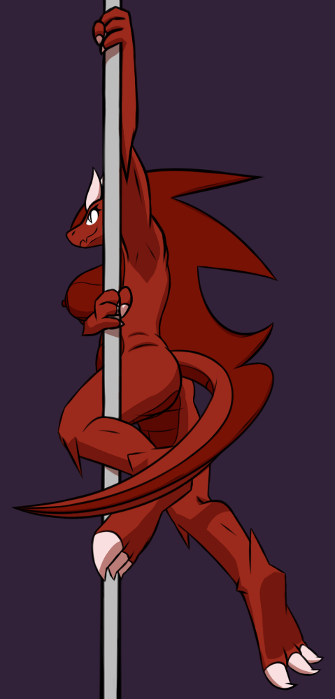 And secondly, without anything holding them together, her breasts, as sexy as they are, they can't squish the pole on their own :P