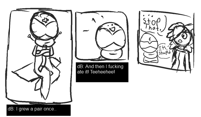 I don't like her legs that much too, I should work on that. Thanks for telling me. ... Well let me see then. Some sort of general idea for what to wrap the plot around: