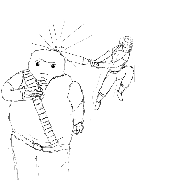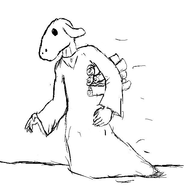 Yeah, I had drawn the head too big, so I made the body pretty tall to compensate. Then I redrew the head smaller, which left the body too tall. :<