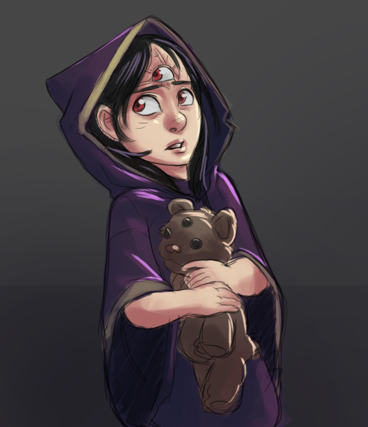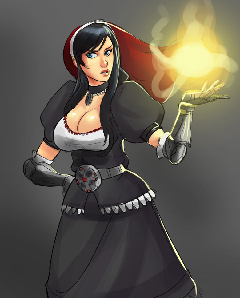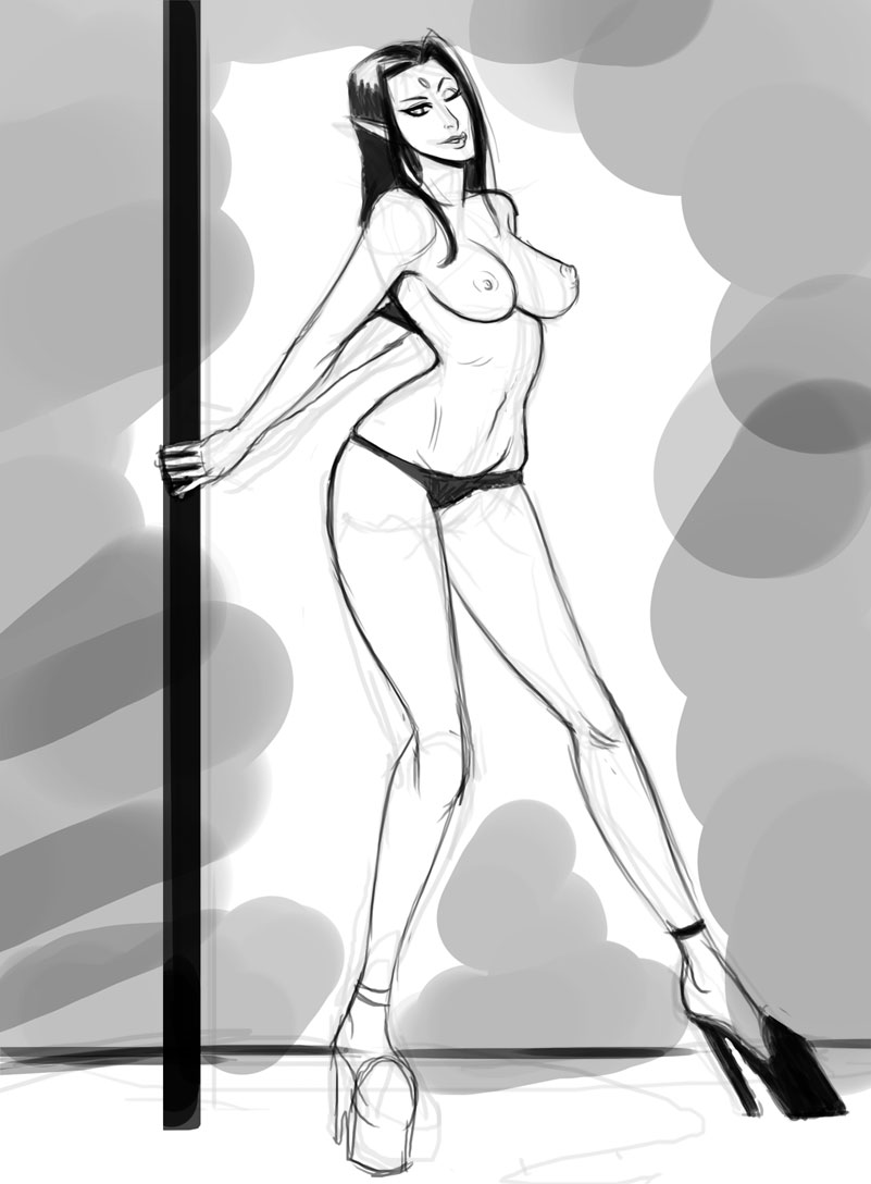 My request is this: either draw her in that outfit, or if you prefer, cheesecake it. I was thinking of she only wearing the cloak and nothing under, revealing as much or as little as you want. She has a 'come hither' look about her.