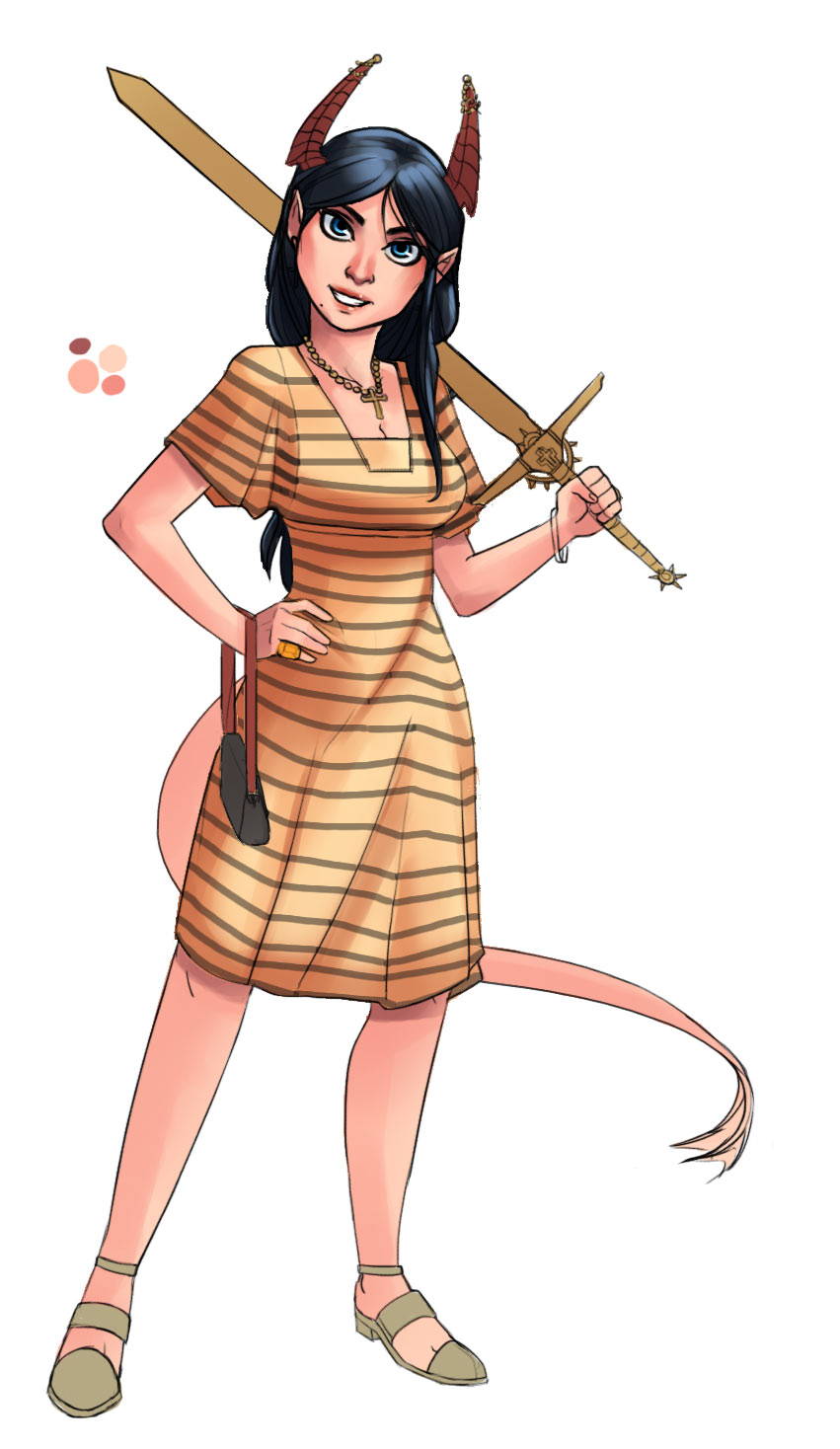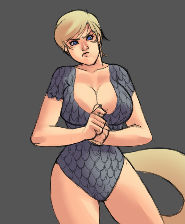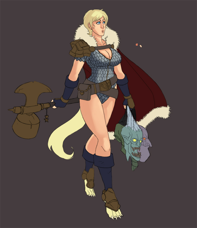Pic related, it's Freya. Though in Someone Else's writing she has braided hair. She is described as boisterous, friendly and tactile (nips other peoples ear, hugging, stuff like that). Draw her, if you do, as a 20-25 year old.