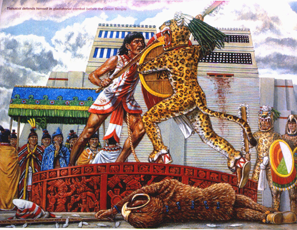 Henceforth Victims sacrificed to him are sacrificed through a form of Gladiatorial Combat, where the victim was tied to the sacrificial stone, given a bladed club, and Jaguar and Eagle Warriors will pile on to him one by one til the Victim is slain.