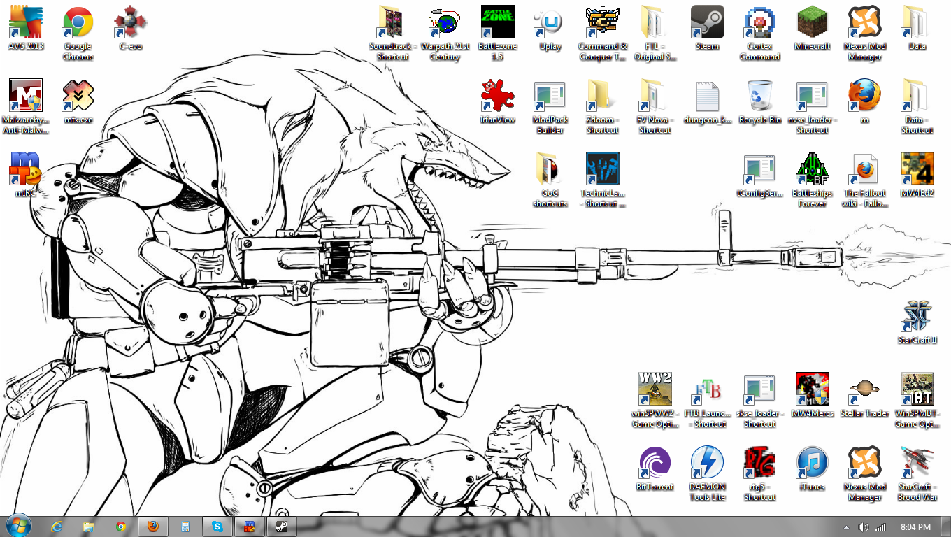 Here is mine again. I actually don't use Matlab: I just keep the icon there to remind myself to learn to use it. I've managed to keep the desktop relatively clear of junk for months now, which is nice.