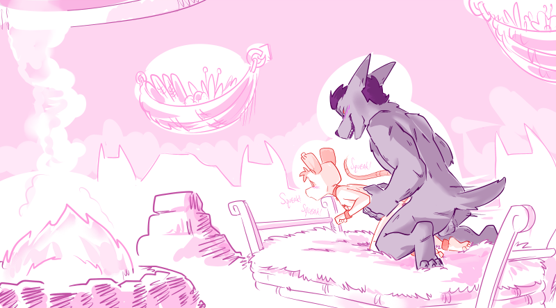 The wolf lets his head roll back and makes a satisfied growl as the sounds of fellatio grow wetter and more muffled. “Hmm, very astute. As I mentioned last night: you three gave the old court members a good scare. But now that they’ve had a minute to collect themselves and change their pants, you can bet they’ll come for you, demanding answers. I’d like for you to be prepared for when that happens.”
