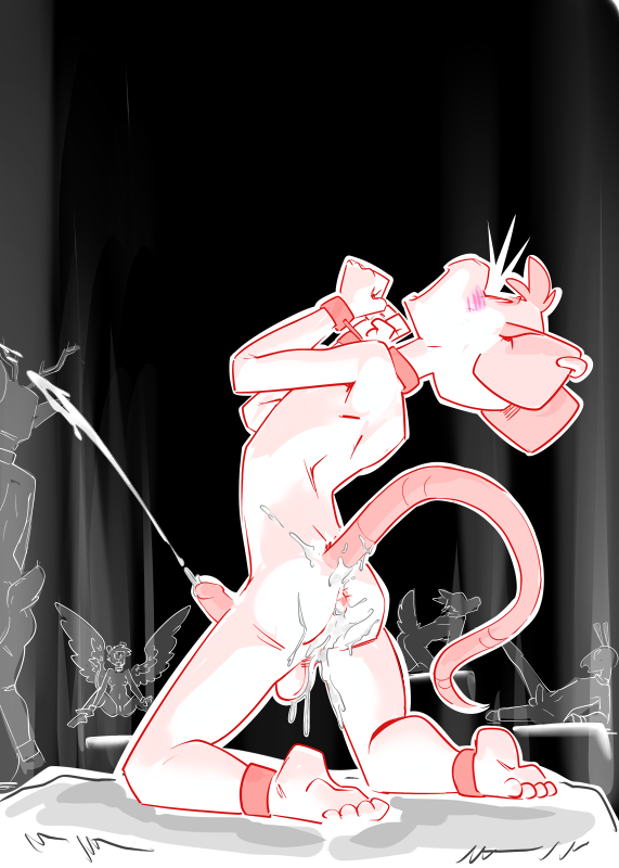 “Wh-ah!” Gabe clenches, feeling his body shudder as he come close to climax again. His master pauses and allows the sensation to pass as he edges the mouse further.