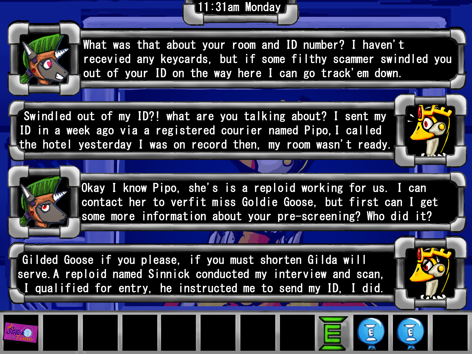 Looks like it's our lucky day after all! Gilded Goose has been caught in a legal snarl, and we're in a position to make life harder or much easier for her. Instead of looking incompetent, we'll earn her gratitude for helping her out!