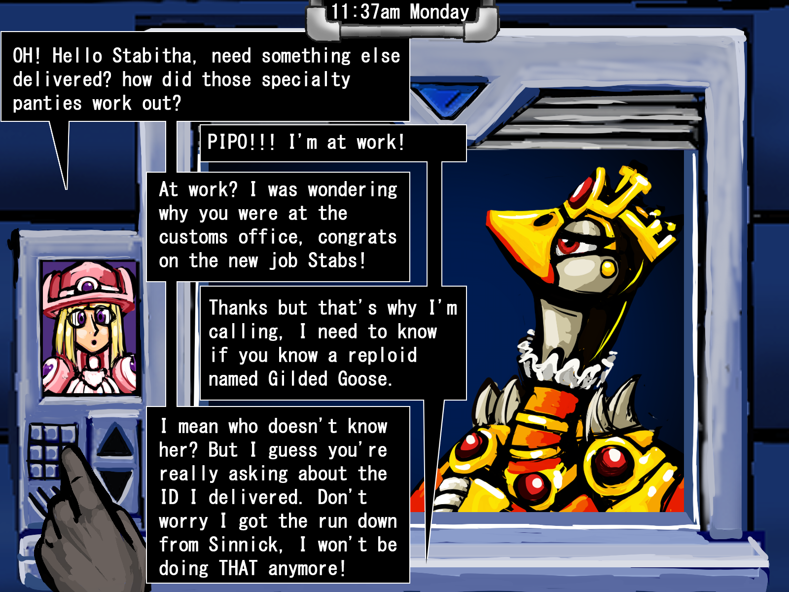 She prefers "Gilda". She didn't take that bait, so she's either a smart impostor, or a rich and attractive celebrity whom we do not want to upset. A reploid in need is a reploid in our pocket, but only if we know how to handle them!