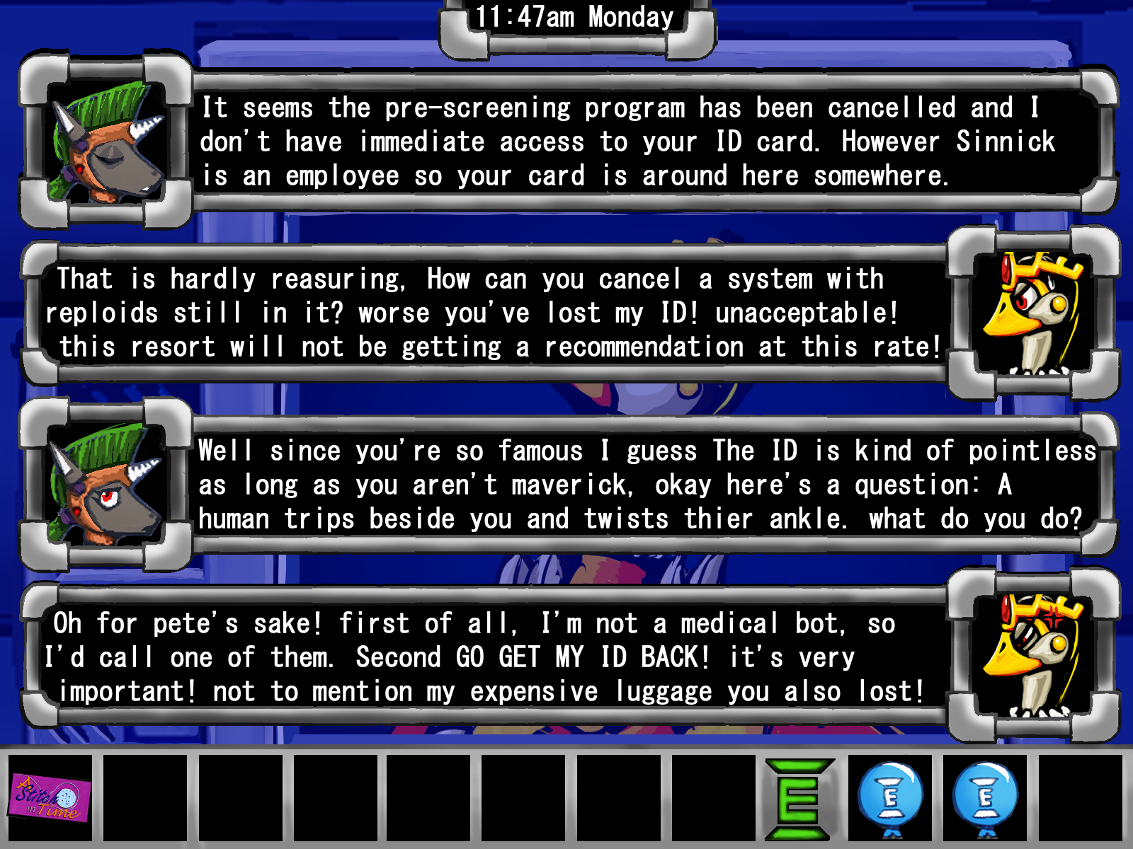 "Well, the bad news is that the pre-screening program has been cancelled and I don't have access to your ID card. The good news is that we have a real employee named Sinnick here, so your card is hopefully still in the bureaucracy somewhere. Now, there are a couple of things I can do to help sort out this mess for you."