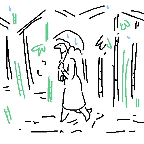 The storm has eased but I keep my umbrella raised against occasional drips as I start the walk across town.