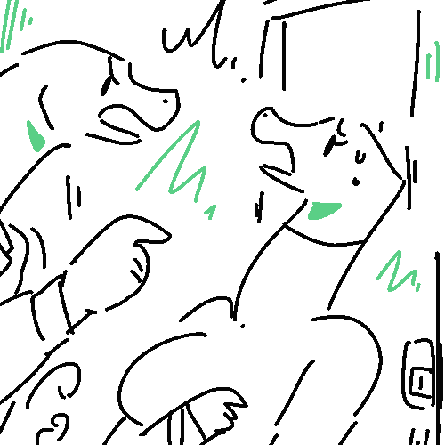His scales are a deep, healthy green and I can see his clearly defined waist under his high-waisted pants. There are key differences–his eyes are blueish rather than yellow, but he’s almost a spitting image of–of…