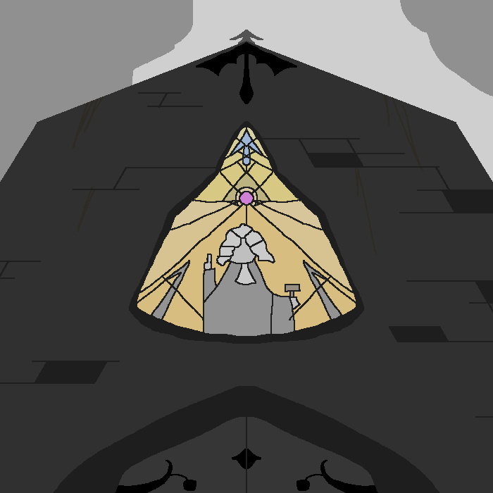 The curtain turns to reveal it is in fact the Jurist of the Chapel of the Black Pheon, apparently hovering with their peculiar cape resting on the ground behind them. They hang in the air like a ray from a sun that may soon stop shining.