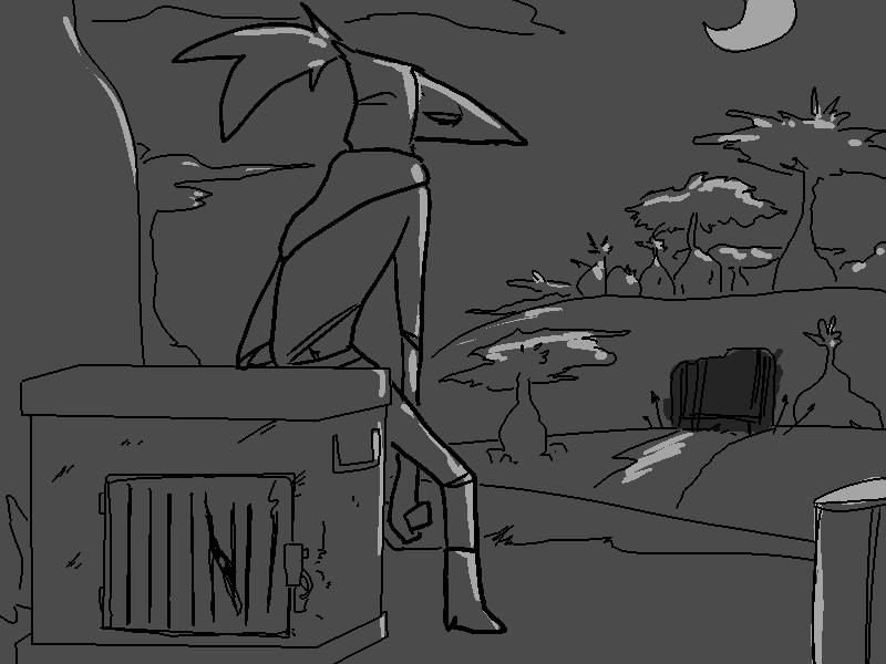 Editor's Note: I want to make it abundantly clear that I am neither the writer nor the artist for this quest: I am only serving as a transcriber to port this work from another location into a public, preservable medium. This first large burst of posts will be transcribing the already extant art (and commands) onto the board. After the extant art has been posted, commands from the board will be forwarded to the artist for consideration, and future art (and successful commands) will be posted here by me. Commands posted before this period are invalid. Consider this a cutscene until I make clear otherwise. All art and story credit goes to Nine Hyperzine Tripping Engineers.