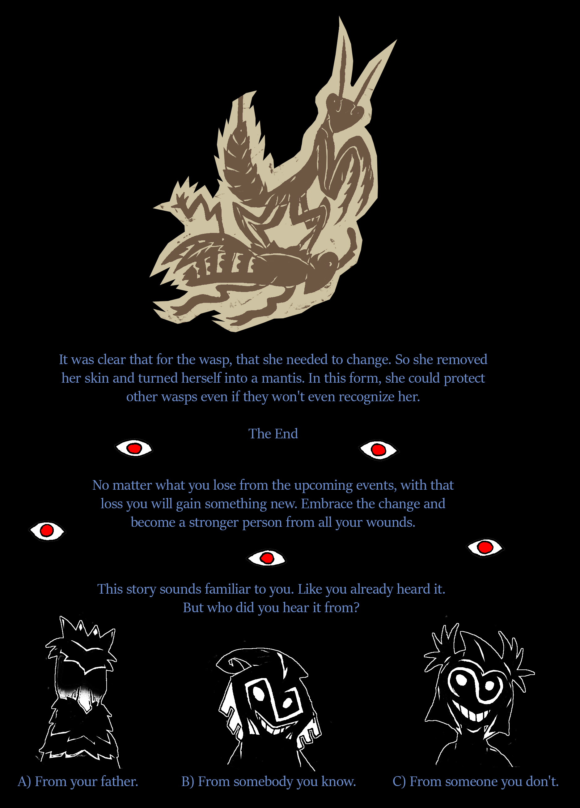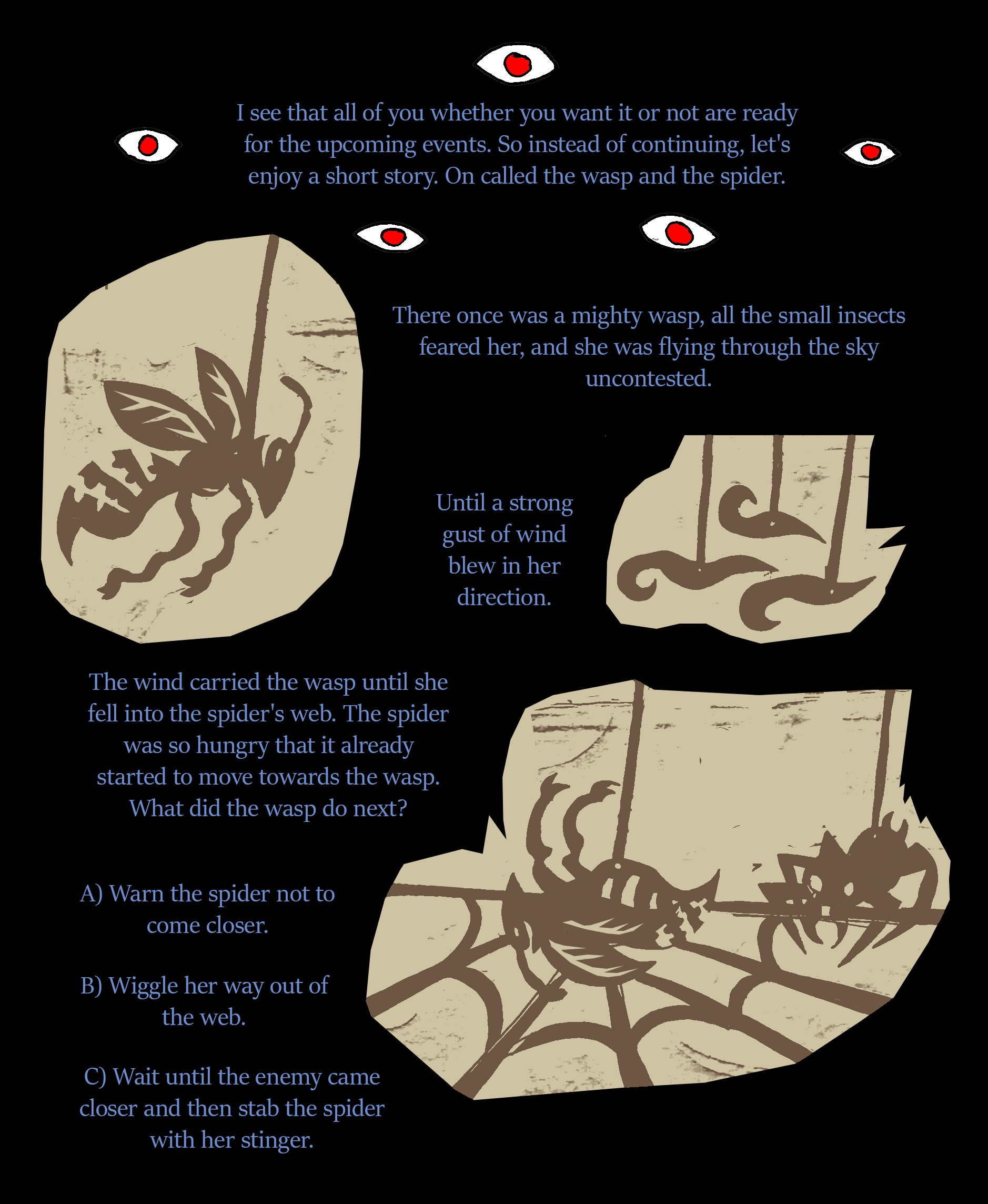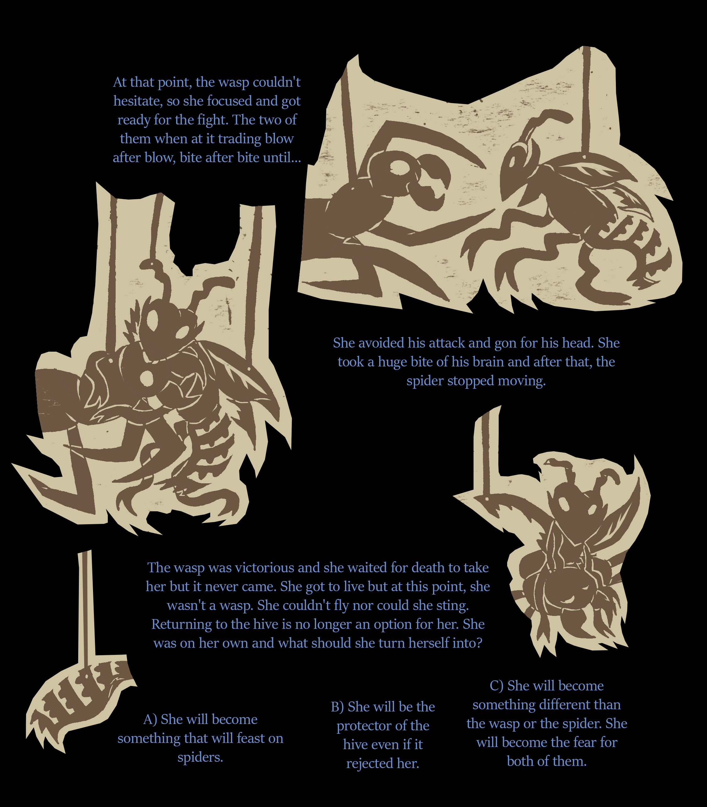 B. Your purpose is the hive. Even if they choose to eat your body as they view you as useless, you will accept it if it means feeding the colony, the queen, and the larvae’s. It’s in your nature as a wasp