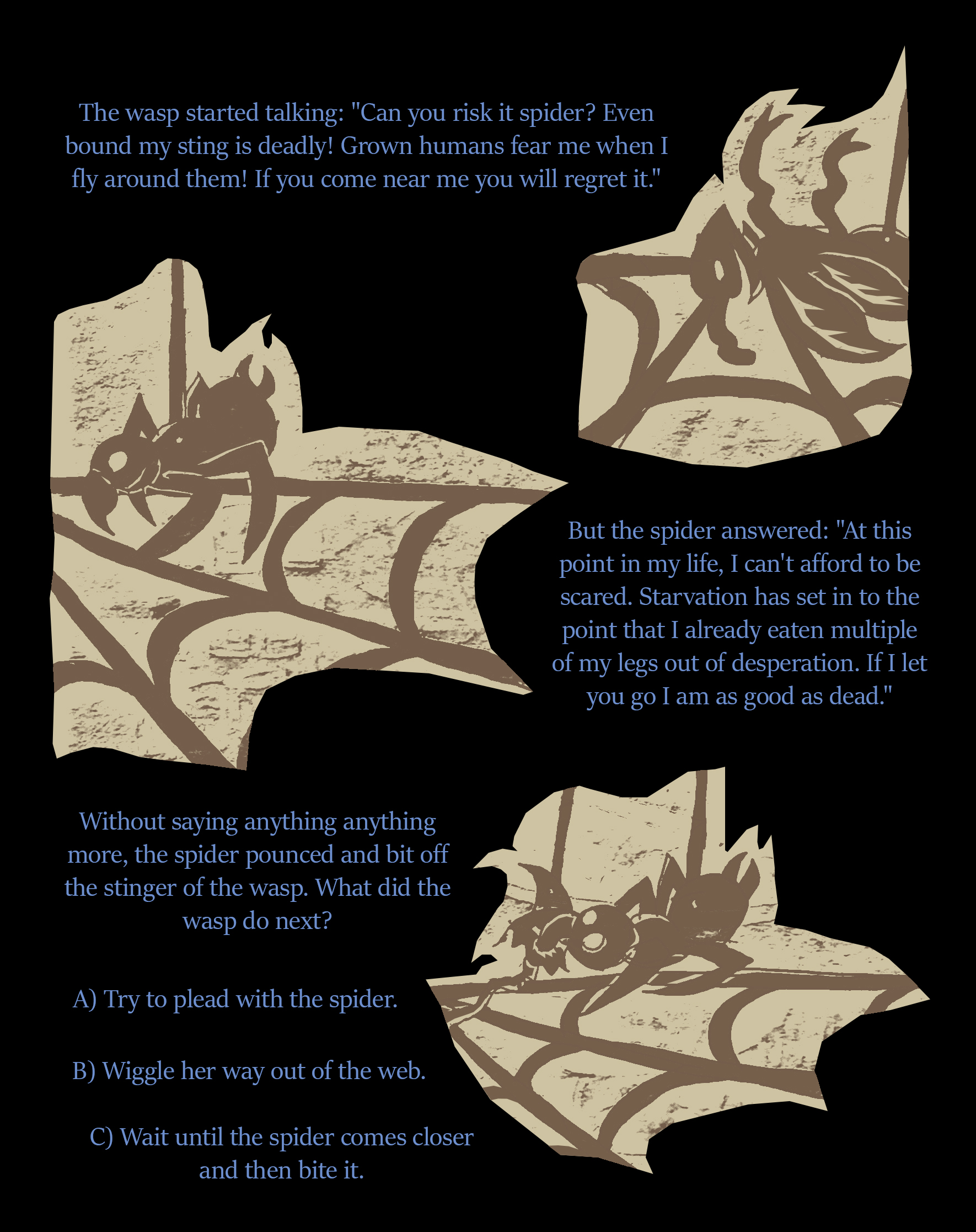 A) can you risk it spider? even bound my sting is deadly