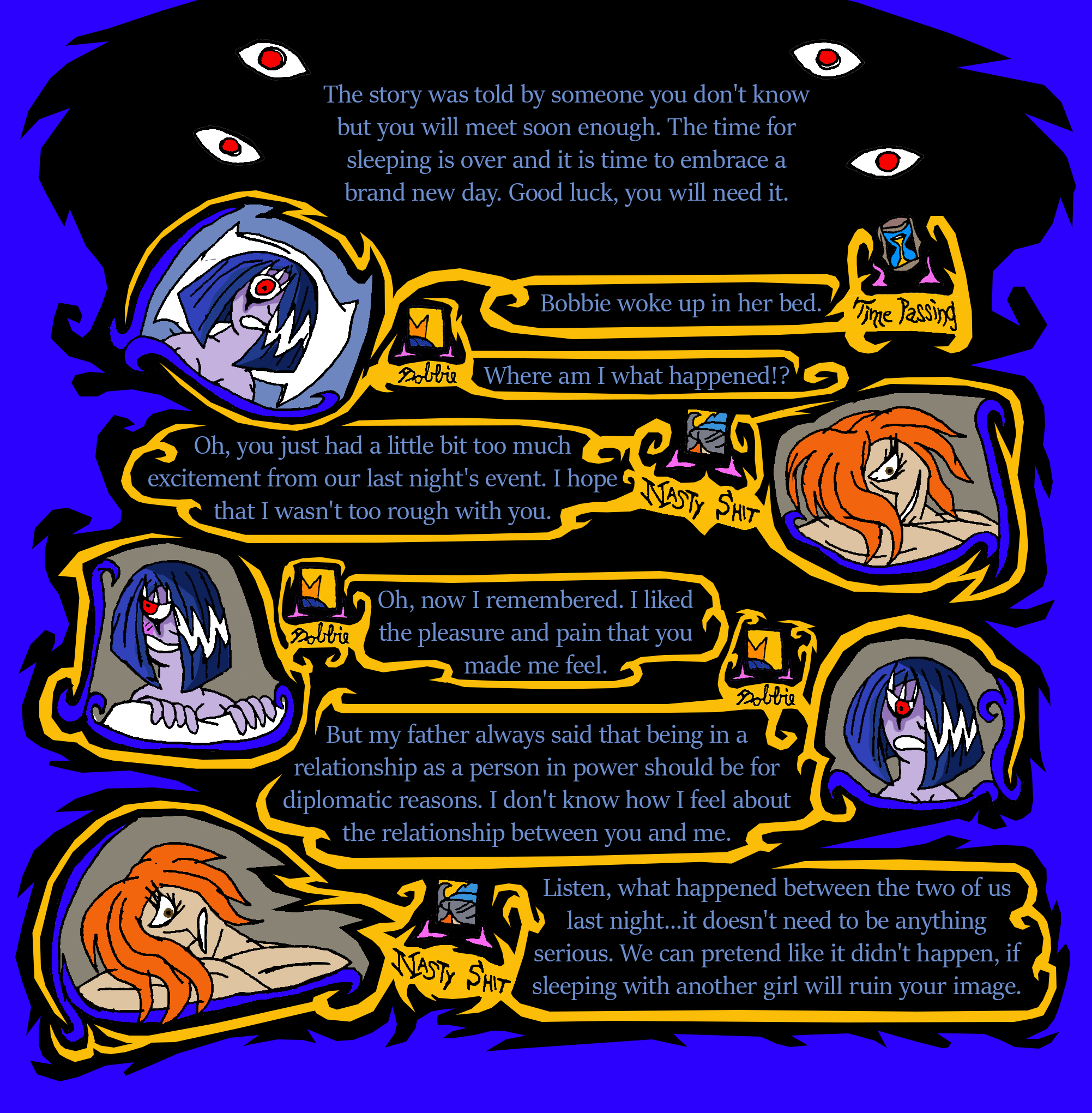 Does that mean she will punish him if he doesn't do intimate things with her? Because I don't think that's the kind of ruler she wants to be.