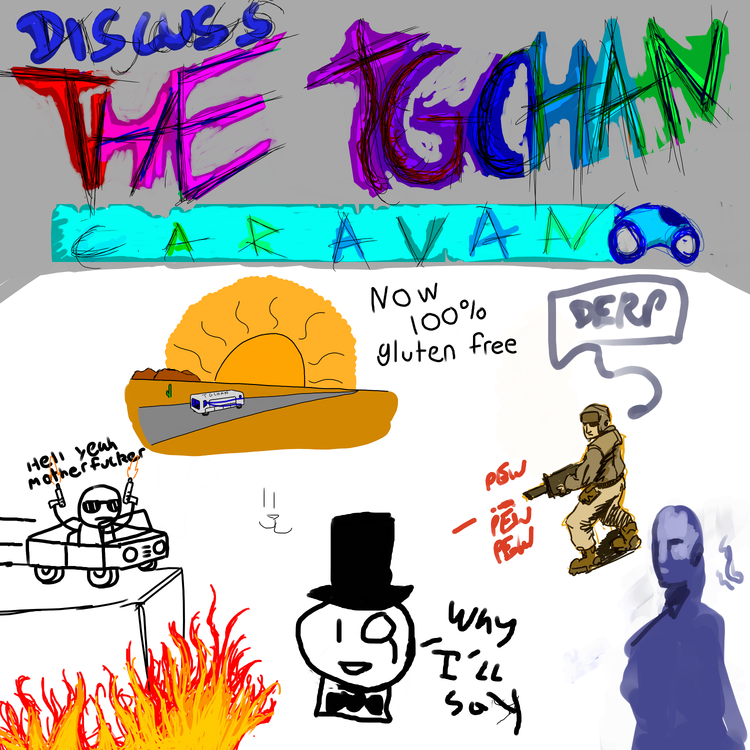 Right, so, this thread is both for discussion of The TGchan Caravan and for opting in and out of it as a quest author. In order to be eligible, you have to have either completed a quest or have maintained one for a good amount of time. Otherwise, you will be shot on sight. You will also have to give us your rough location in the world, though you may lie through your teeth about it.