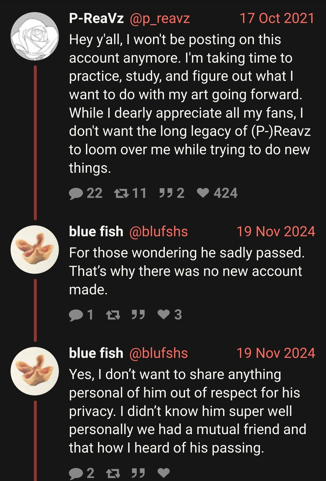 I don't know where else to ask this where it'll be easily seen, but I saw someone on twitter claiming that reaver/reavz has died. Does anyone know if that's true?