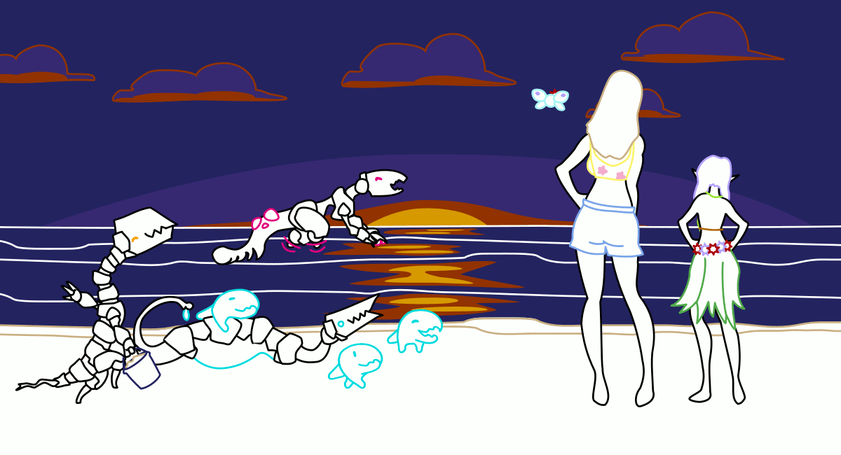 :Come on, Mags, this beach always has strange people with lots of cool stuff! It’s highly likely that they’ve dropped something throughout the years that could be very valuable for us for the taking. You gotta help me dig them up! We can make a fortune, or even find, like, ultra-cool weapons or armor that can help us in our missions!