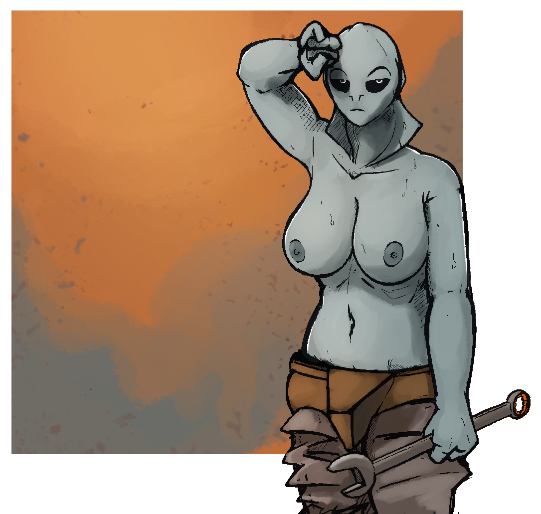 Ortessus gets hot under all that armor--splitting asteroids with explosions and-- wait. Haven't I drawn this before?