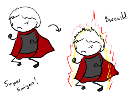 Also he should get some more martial arts training to go with his flames and poofing around.