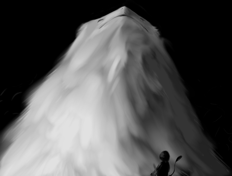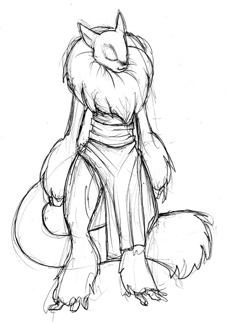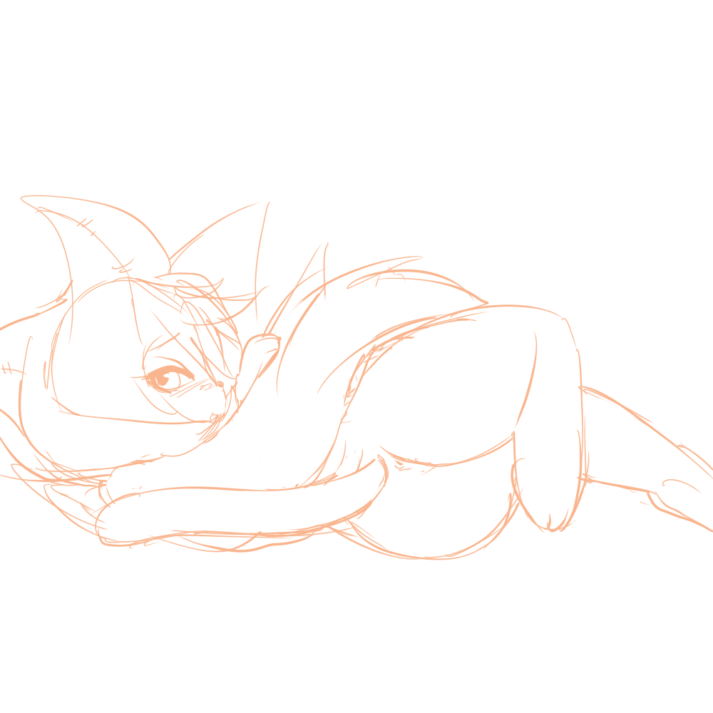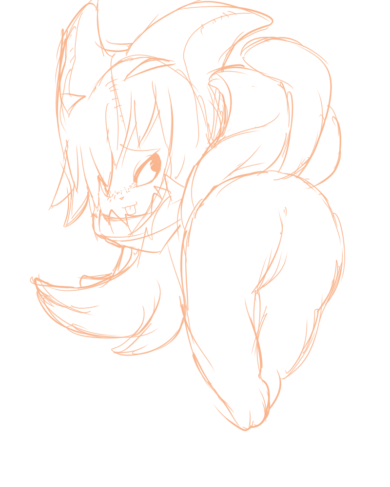 The tail is mostly a casualty of resize/cropping. It's actually going farther out and then looping back, and may actually have been a bit too -long-, but I resized the base sketch in order to make better use of the canvas space and the loop got snipped as a result.