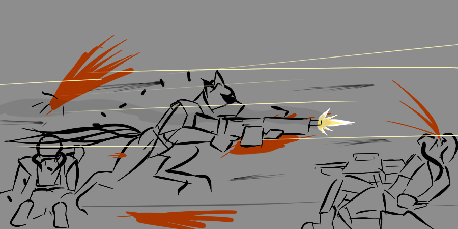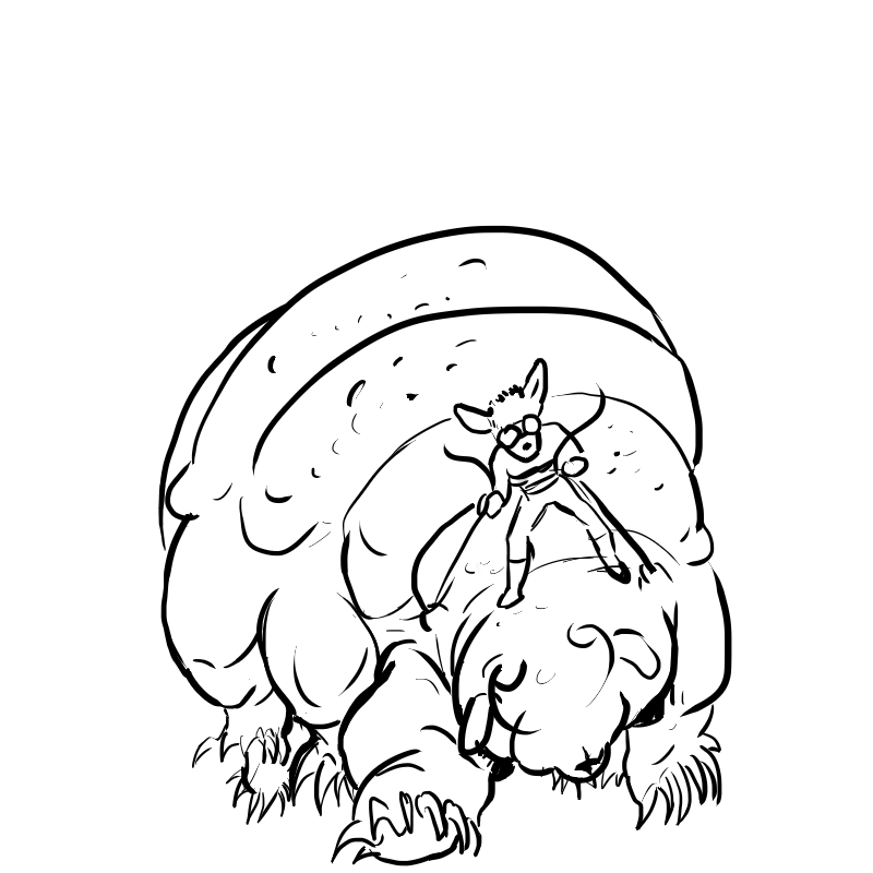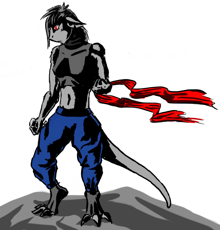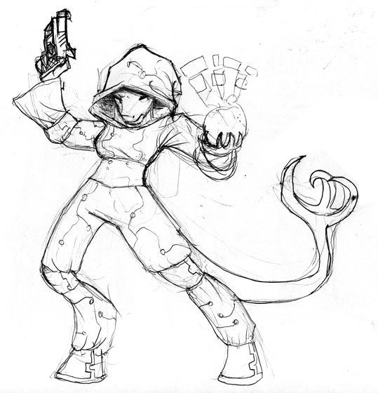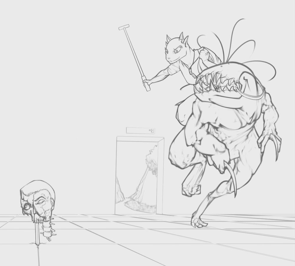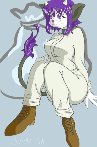 The legs ended up looking too short (and the left/bottom leg way too thin) because I tried to forshorten them since they're facing toward the camera and failed pretty hard at it. I fixed up the bottom leg a bit in a minor revision but didn't bother posting it here =V