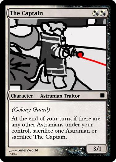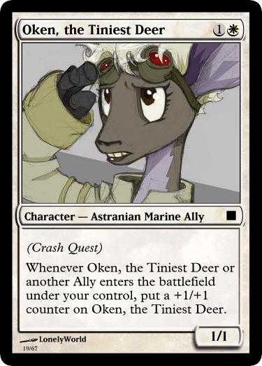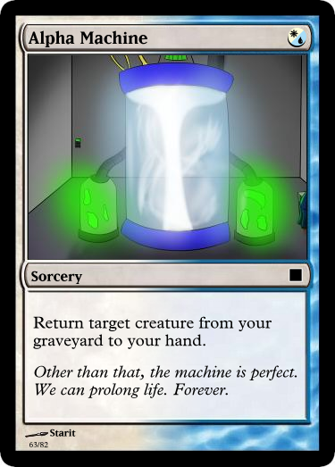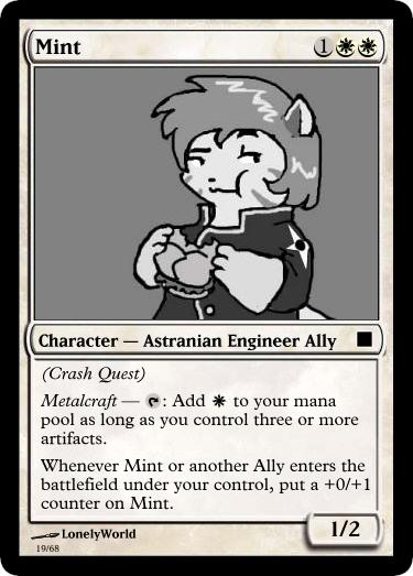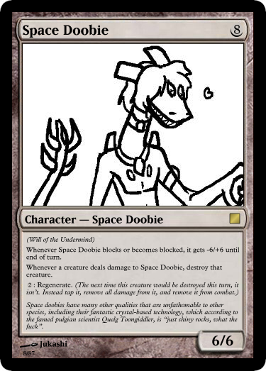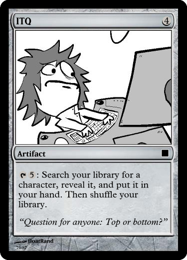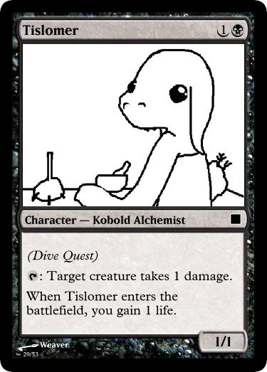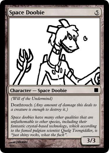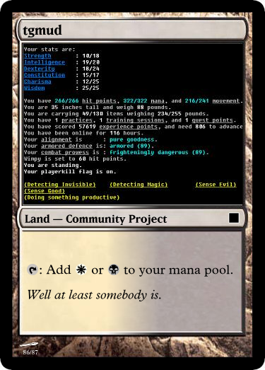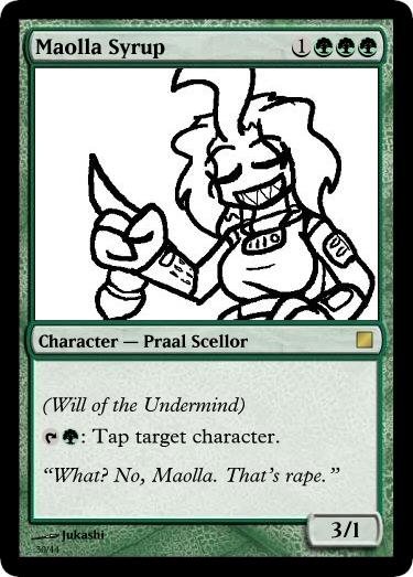 This is my dumping ground and idea spawn for a project I am working on: turning tgchan into a bunch of custom Magic the Gathering cards. Enough to play with. And have varying decks.