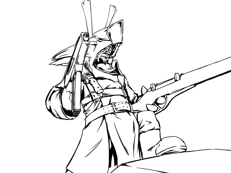 The butt of the pistol was raised up and held at the ready, the scaled one gripping the barrel of the gun and making sure the weapon was unloaded - he didn't need to shoot himself to put an end to his career! Raising the gun high, the brass gleamed in the glowing light of the enchanted rods around the room, which made reading no challenge - even for a dwarf. Pushing closer, the kobold raised himself up high and felt the world go still, before the weapon crashed down across the back of the dwarves skull.