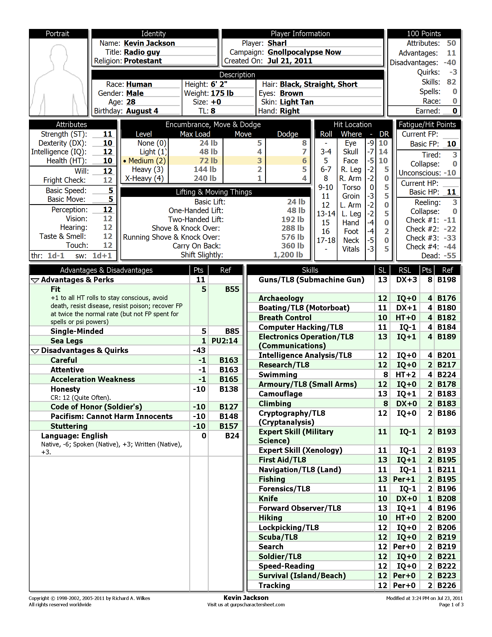 > <Squeegy> You are a US field medic, for reference, please post your timezone and hours available for games in the thread
