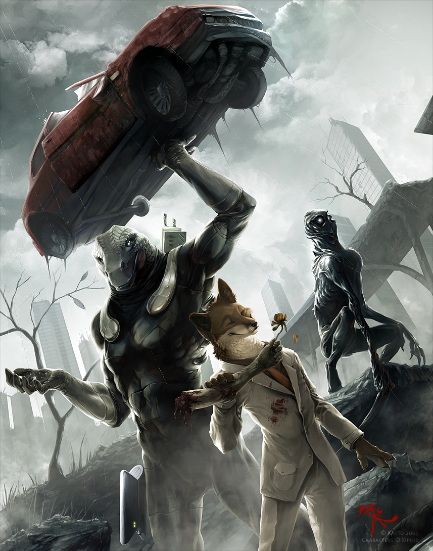 This was basically what my game was like, except the big guy was a moose, the fox had on power armor and there was a pint size mouse that rode around in the moose's antlers and was a demolition specialist. He gnawed through the wires with his teeth, see?